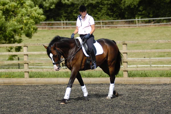 在你能够很好地向前慢步骑行和马儿比较放松颈部和口部时,就可以将训练带入下一个阶段了,那就是移行。马儿的热身已经足够了,所以下一个任务就是看看它的身体能够多圆润。在移行过程中,骑手需要让马围绕自己的内侧腿运动以保持身体的柔软性,马儿也会偶尔偷个懒,如果它变得懒散或者动作迟缓了,可以用腿踢它一下。如果马的身体开始在快步和慢步中变软,可以用放松缰绳的方式奖励它。