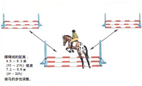 平时要跳越类似的障碍,训练骑手了解多大的距离适合他的马匹,什么步伐用多大的距离。