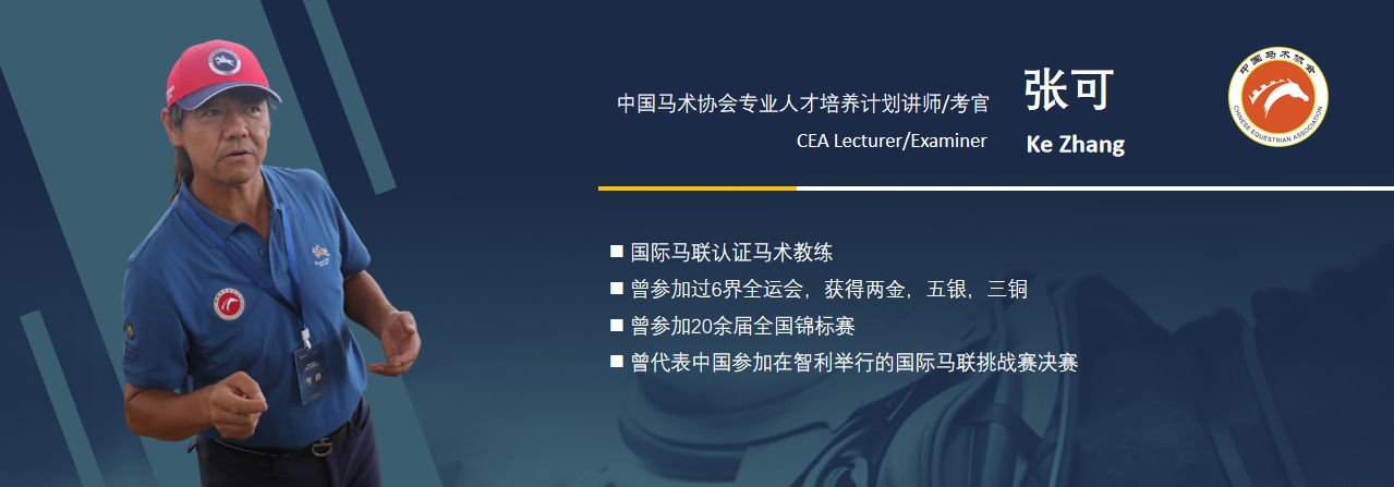 国际马联认证马术教练、中马协专业人才培养计划讲师及考官。