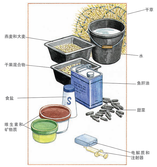 马可能对维生素或矿物质有特殊的需求,以促进蹄部健康生长。在不增加饲料量的情况下,喂油类是提供能量和保持良好状态的好办法,可以使用蔬菜油或鱼肝油。