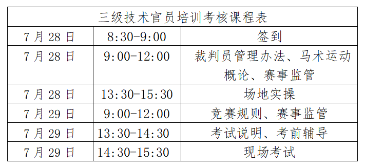 根据马术专业人才培养计划,我协会将与山东省马术协会在山东映川马术俱乐部于2022年7月30日-31日举办马术场地障碍项目二级技术官员培训考核活动,于2022年7月28日-29日举办三级技术官员培训考核活动,合格者授予中国马术协会相应等级技术官员证。现就本次培训考核相关事宜通知如下: