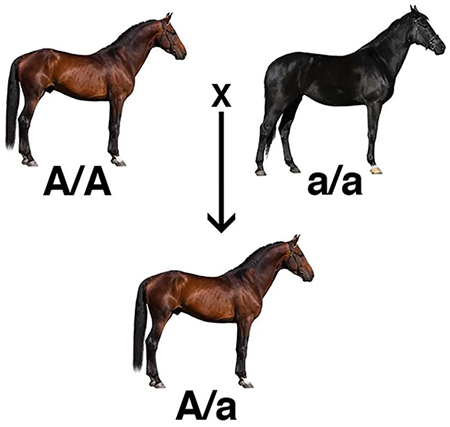 马匹被毛颜色,属于简单遗传。我们所看到的马匹被毛颜色,是由单一的基因所控制,由父系和母系共同贡献。马匹被毛颜色主要由黑色和红色两个颜色元素控制。简单理解,黑色属于显性基因,而红色属于隐性基因。