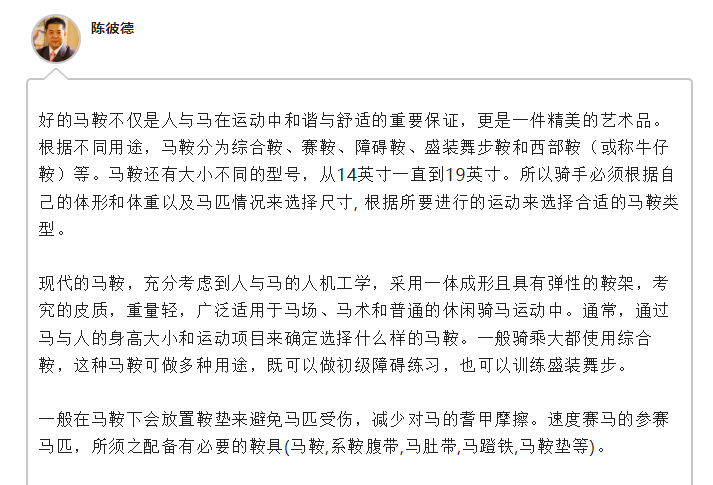 问:常言道“人靠衣装马靠鞍”,难道马配鞍最重要的作用是美观吗?