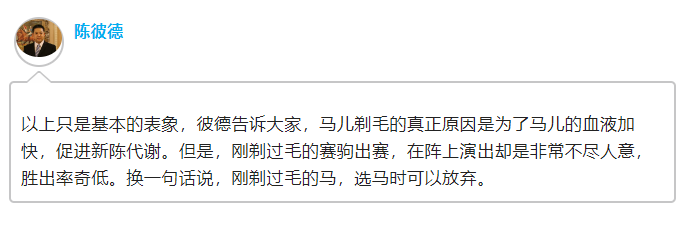 剃了毛的赛驹又表现如何呢?