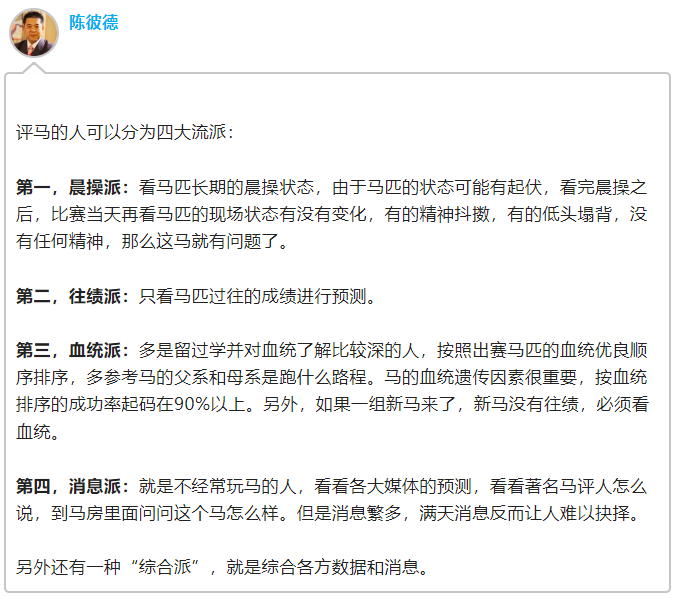问:不同的评马人用的分析方法都不同,他们有分哪些流派?