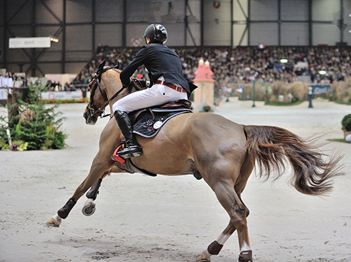 对于这个问题的解决,一位来自法国的舞步教练只用两个英语单词就给出了答案:KEEP& WAIT(保持和等候)。她对动作的要求是:用你的腿辅助(初学者可以用声音、鞭子等辅助)维持马匹前进的动力,让马向前,然后保持你的手和骑座具有稳定的联系,当马匹要缰、抬头或低头时,不要理它,保持自己的正确姿势,让它拉不走你的手;反过来我们也不拉它,不拽它,就是保持,等着它,就是等着!一会儿,它会自动把头低下来的,因为它要找到一个固定的、可以相信的依靠,然后舒服地被你的缰绳和骑座支撑着进入工作状态。就是如此的简单,但是做起来却不是很容易的事情!