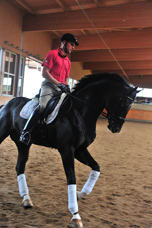我的目标是我总能让马更低,更向前伸展而不失去平衡。这种能力在需要最高级收缩的动作中特别重要——原地踏步、正步和后肢旋转。90%的骑手不能让马的颈部在做原地踏步或正步中低一些。