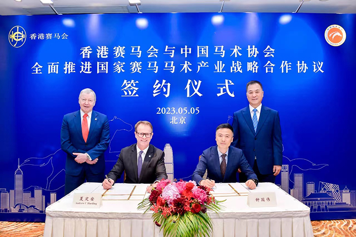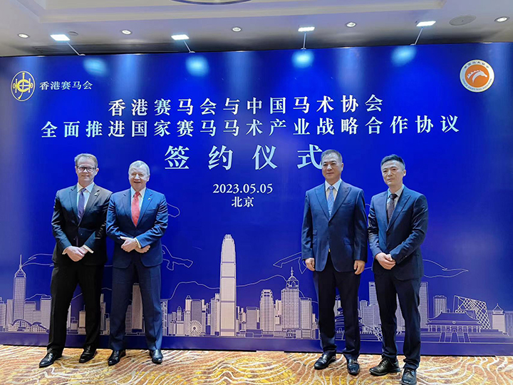 2023年5月5日,中国马术协会与香港赛马会在京签署“全面推进国家赛马马术产业战略合作协议”。双方正式开启新一轮战略合作伙伴关系,包括专业人才培养、行业标准建设、赛事活动合作、反兴奋剂、商业开发等,共同促进行业产业升级发展和交流合作,打造具有国际影响力的一流品牌赛事。