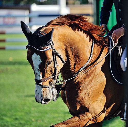 一匹始终受衔的马,它的颈部肌肉会主动参与运动。强有劲的马颈非常重要,在竞赛中,取位、转弯或者避开障碍都需要通过马颈改变马匹前进的方向,并通过缰绳的作用透过躯干来影响后肢运动。马颈强壮有力,马匹就能对骑手指令做出迅速反应,把握先机,否则就会慢半拍屈居下风。(马术在线)