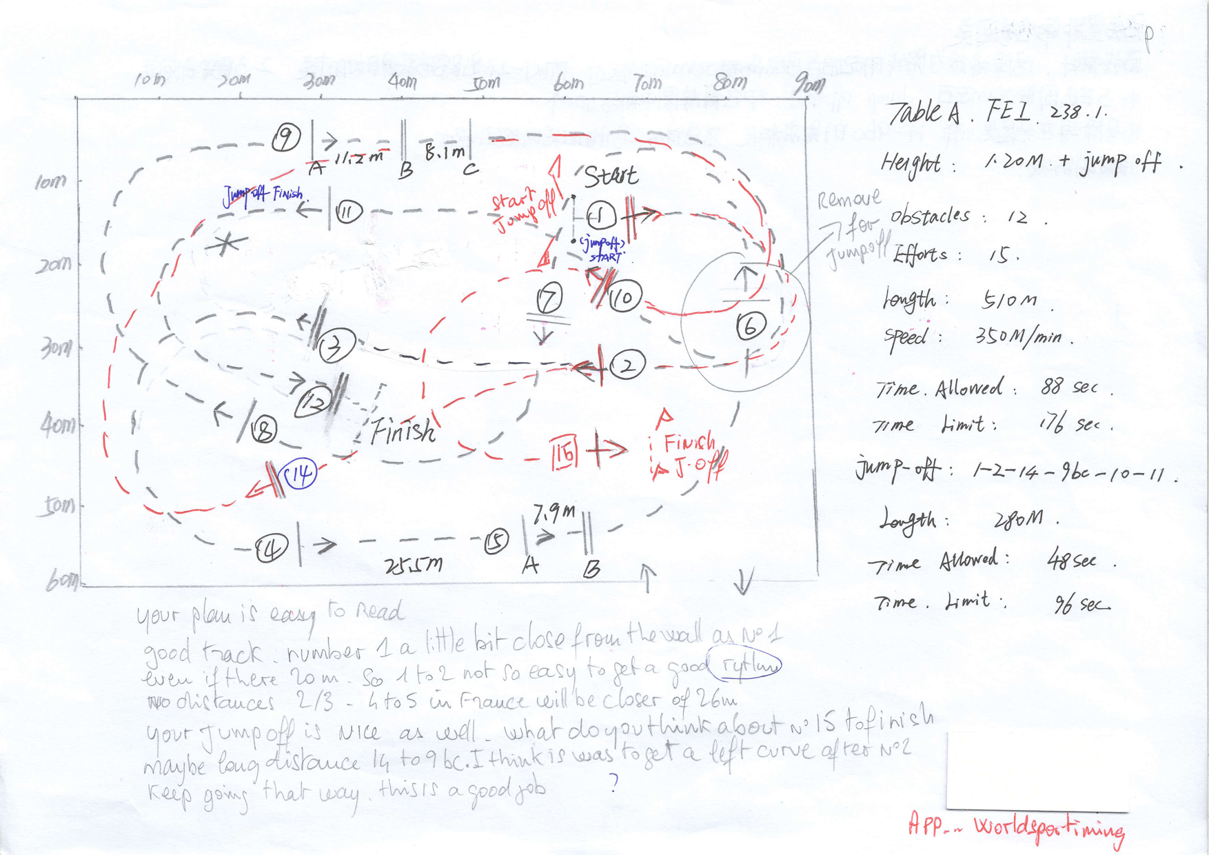 讲师Olivier从骑手、教练、马匹的视角解读路线设计的思路,用耐心细致的讲解,传授路线设计理念。他对每一位学员的路线设计作业认真修改,给出修改的建议和评语,尽心尽力帮助每一位学员进步,这种精神和态度得到学员们的肯定和钦佩。