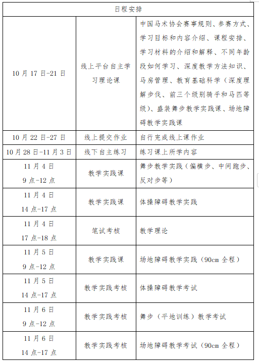 (三)线下辅导和实践考核:2024年11月4日-6日,在西部巨人马术俱乐部进行线下集中辅导与实践考核。