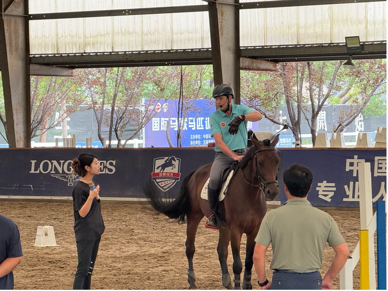 首先感谢FEI(国际马联)的教练来到中国做马匹调教的培训工作,用全新的教学方式耐心的进行讲解,五天的培训收获颇多,让我理解了每个年龄段的马匹接受的内容都不同,从热身到进入障碍,让我能深刻的理解了马匹训练的好坏,年轻马应该用什么样的方式去训练,给我们的每个骑手纠正正确的骑姿。最让我感动的还是65岁的法国讲师每天都要亲自上马给我们做示范,骑手有问题的时候都会第一时间进行示范、纠正。他的这种敬业精神更值得我们敬佩和学习!