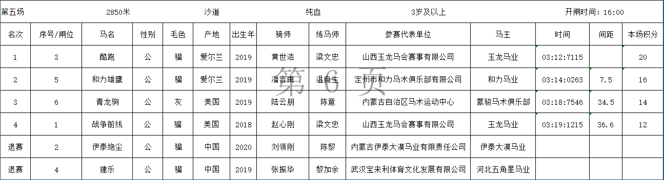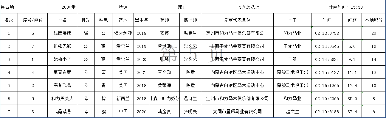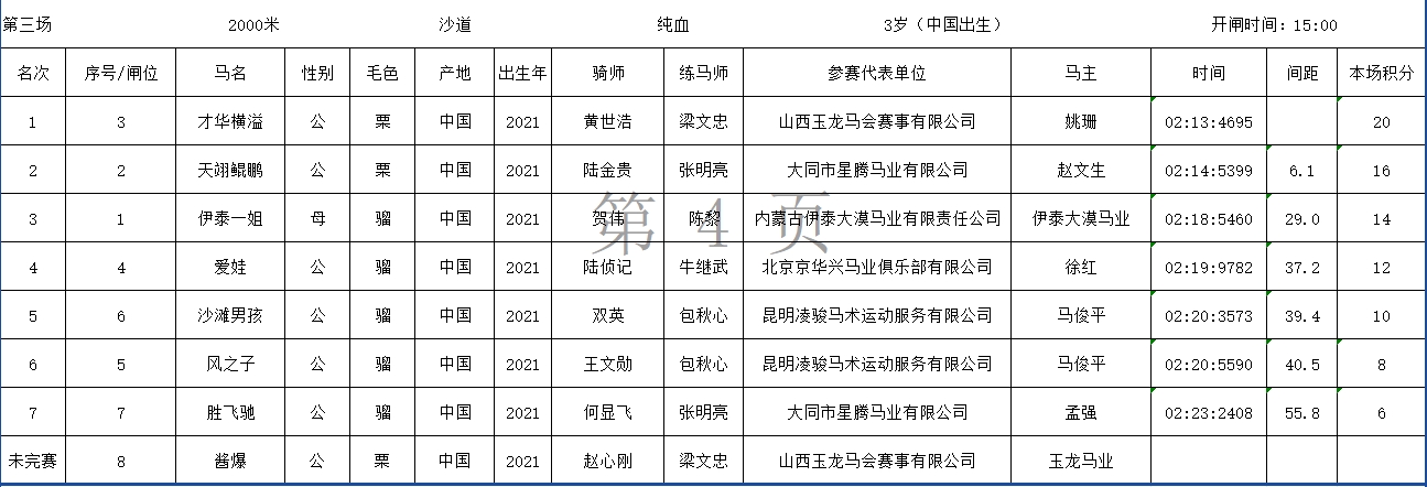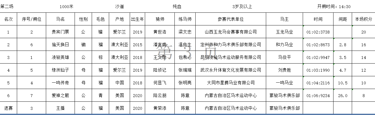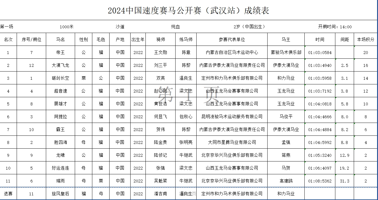 2024中国速度赛马公开赛(武汉站)成绩表