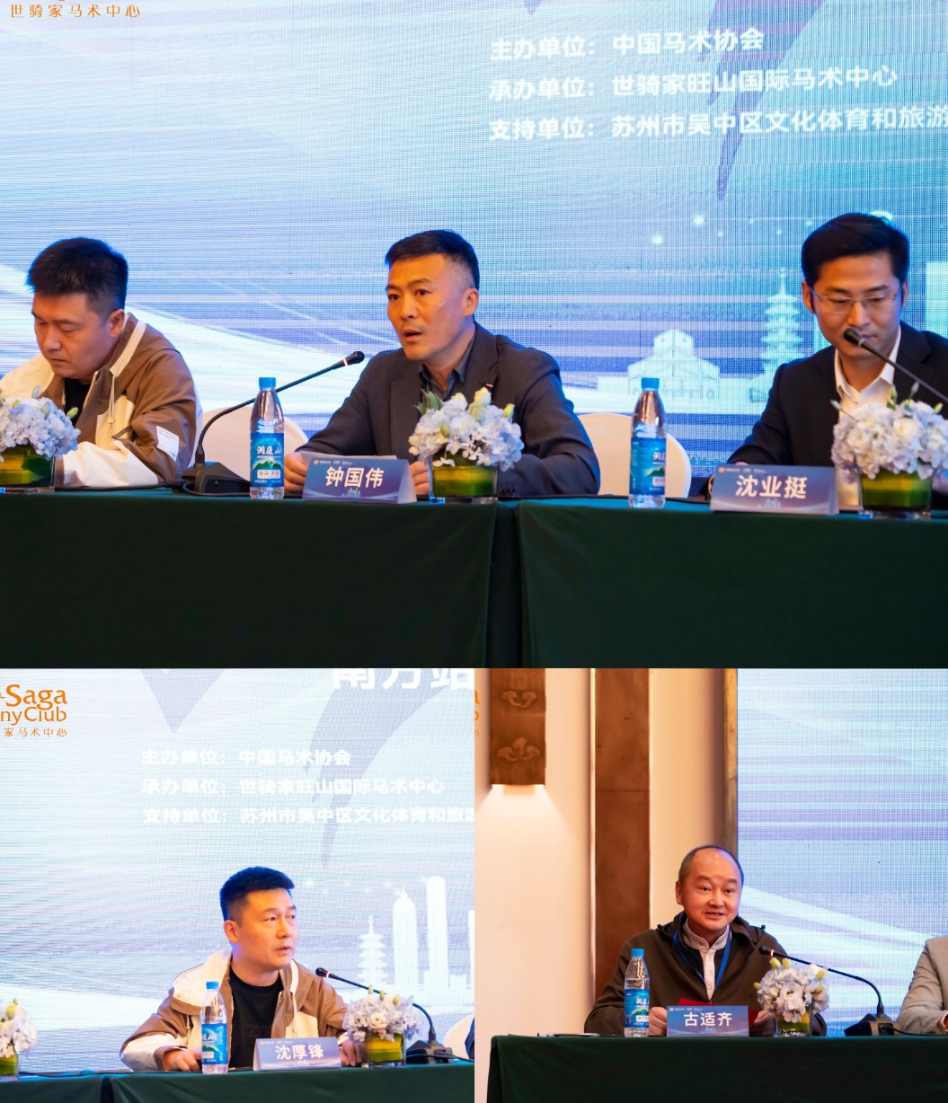 中国马术协会秘书长钟国伟在致辞中表示,考级项目对于马术行业意义重大,各考评员应遵守行业道德,注重考风考纪,为马术行业树立良好的风气。同时勉励所有考评员以身作则,为中国马术运动高质量发展助力。江苏省马术协会会长沈厚锋对中国马术协会将本次考评员培训落在江苏表示感谢,考评员是马术发展的中坚力量,对马术考级项目的发展具有重要意义,江苏省马术协会将继续支持中国马术协会工作,与中马协一起共同推动行业发展。世骑家旺山马术(苏州)有限公司董事长古适齐对各界领导和同仁的支持表达了感谢,并表示世骑家将尽全力保障本次培训顺利进行。
