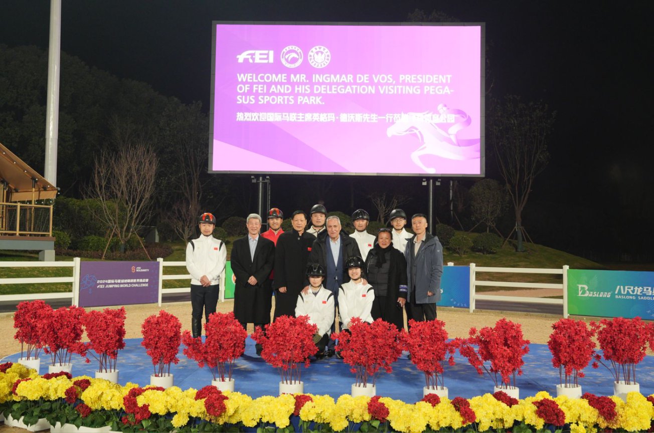 2025年1月13日,中国马术协会秘书长钟国伟,副秘书长兼商务部部长陈九庆,陪同国际马联主席、国际奥委会委员英格玛.德沃斯,国际马联副主席、国际马联第八区主席黄启芳,国际马联商务部负责人拉尔夫.斯特劳斯,国际马联第八区副主席、柬埔寨马术协会主席诺罗敦.南达黛维公主殿下,国际马联主席特别顾问、国际马联高级项目经理樊桦等一行,赴江苏海澜飞马体育公园参观调研。