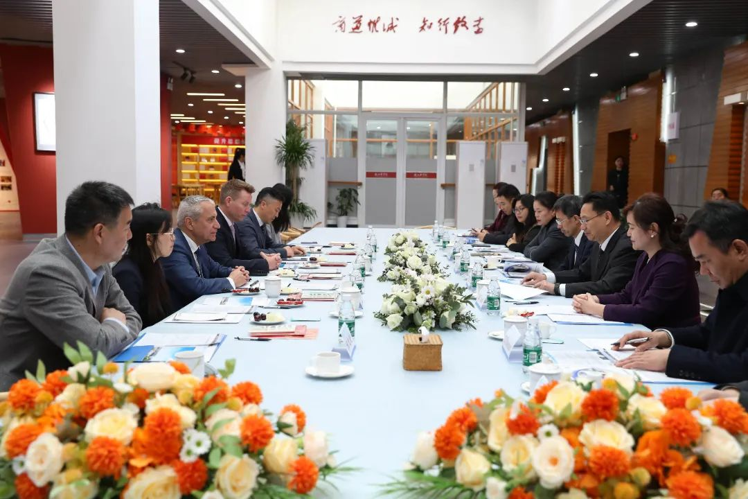 德沃斯一行首先参观了马科学研究及违禁物品检测实验室、驭马体育公园和校史馆,调研了武汉商学院场馆设施、学科建设、科学研究、人才培养和社会服务等方面的情况。在随后的座谈会上,彭瑜表示武汉商学院作为国内开办马术专业最早、功能最全、规模最大的高校,希望得到国际马联的关注、支持和指导,推动中外优质资源交流共享,更好地培养国际化应用型人才。钟国伟介绍了中国马术近期发展、专业人才培养重要性,回顾了中国马协与武汉商学院自2021年起合作共建国家马术学院的情况,首批培养的100余名毕业生已经走上工作岗位。双方将继续加强合作,旨在将国家马术学院建设成集赛事承办、奥运科技攻关、马科学研究与产业服务、国际交流合作与文化推广于一体,国内第一,亚洲领先,国际知名的综合性马术专业人才培养高地。德沃斯盛赞武汉商学院在马术专业领域全面的学科建制,并表示国际马联愿意与中国马术协会一道,与武汉商学院在马术产业资源共享、国际化人才培养、马科学研究等方面开展合作,为马术国际化教育的美好前景提供便利和支持。
