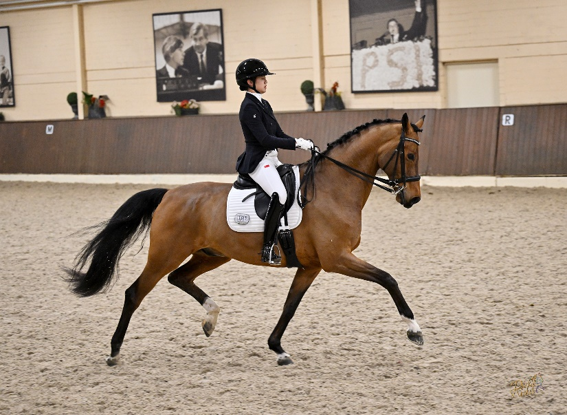 另外我和德国的马匹磨合得越来越好了。刚刚过去的农历蛇年春节我参加了在德国PSI Ankum赛事中心举行的春季赛,在和一众大奖赛骑手同场竞技的情况下获得了第六名的成绩,和新科世界杯冠军还有前德锦赛第三名等世界级骑手共同站上了领奖台。作为此次比赛200多名盛装舞步骑手中唯一的中国人,我非常骄傲和自豪,也希望在接下来的系列国际赛事中继续为国争光。