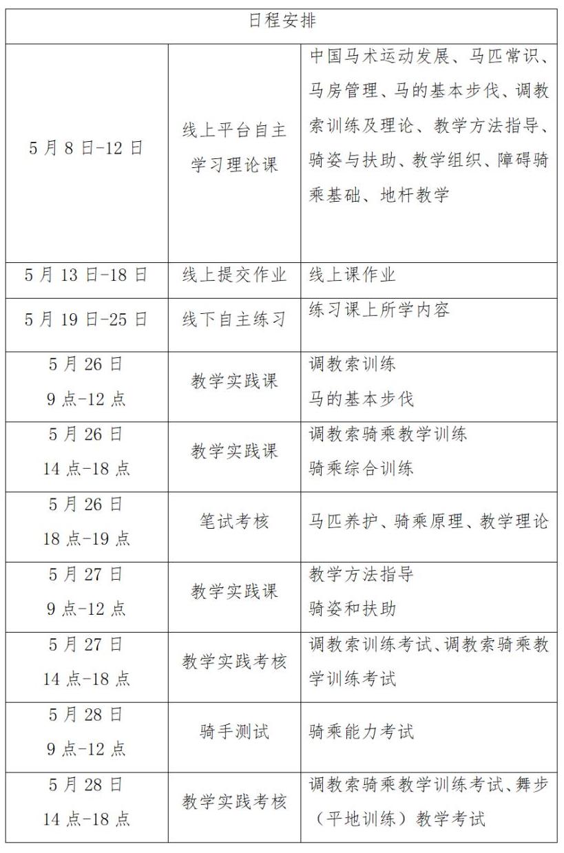 (三)线下辅导和实践考核:2025年5月26日-28日,在深圳骊桐马术俱乐部进行线下集中辅导与实践考核。
