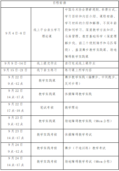 (三)线下辅导和实践考核:2025年9月22日-24日,在天津市兆天马术俱乐部进行线下集中辅导与实践考核。