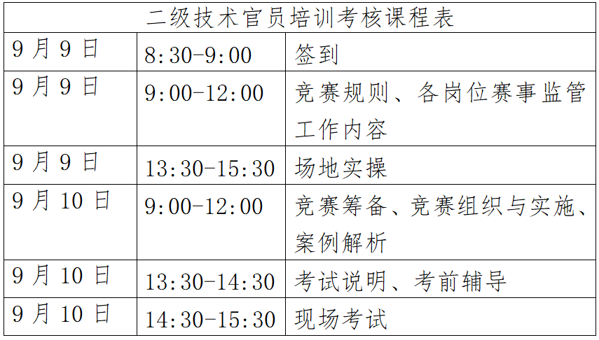 (四)报名资料:报名表电子版,一寸蓝底照片电子版,身份证复印件、三级技术官员证书复印件及执裁证明。