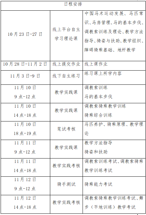 (三)线下辅导和实践考核:2025年11月10日-12日,在MG马术俱乐部进行线下集中辅导与实践考核。