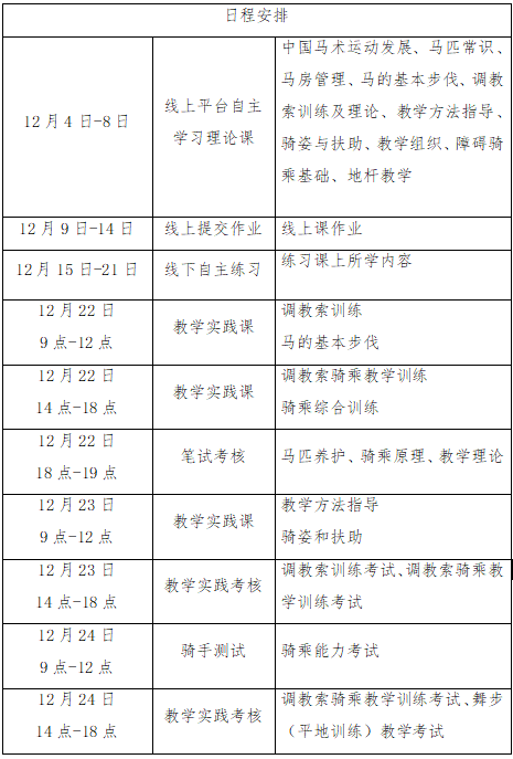 (三)线下辅导和实践:2025年12月22日-24日,在海口小骑士马术俱乐部进行线下集中辅导与实践。