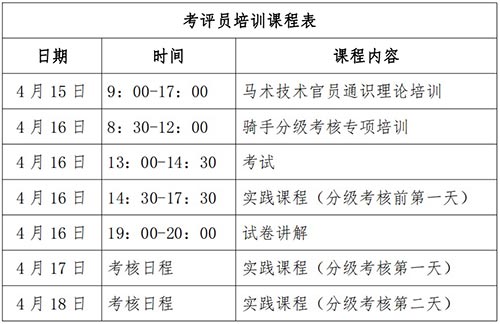 根据考评员培训计划,我协会将于2021年4月15日-18日在南京金陵马汇国际马术俱乐部举办考评员培训活动,合格者授予相应等级考评员证书。现就本次培训考核相关事宜通知如下: