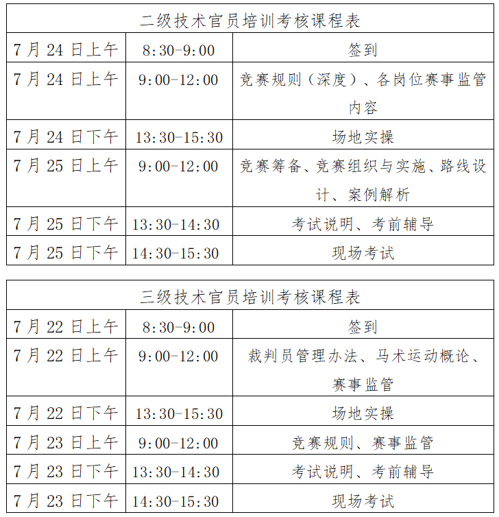 根据马术专业人才培养计划,我协会将于2021年7月22日-25日在秦皇岛市北戴河英伦国际马术俱乐部举办二级、三级技术官员培训考核活动,合格者授予中国马术协会相应等级技术官员证。现就本次培训考核相关事宜通知如下: