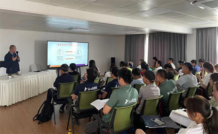 本次培训考核邀请到孙志坚老师担任讲师。孙老师是国际1星级场地障碍路线设计师、国家级场地障碍及速度赛马裁判、国际2星级场地障碍及盛装舞步赛事监督、中国马术协会培训讲师,有着多年的路线设计及担任裁判长、赛事监督长的经验。此次主讲赛事监管、竞赛规则、场地实操、裁判员管理办法等。孙老师和学员们分享了很多大赛当中的案例,通过深入全面的讲解将很多赛事中的细节进行一一阐述,使学员们可以更系统、更详细的了解马术规则。