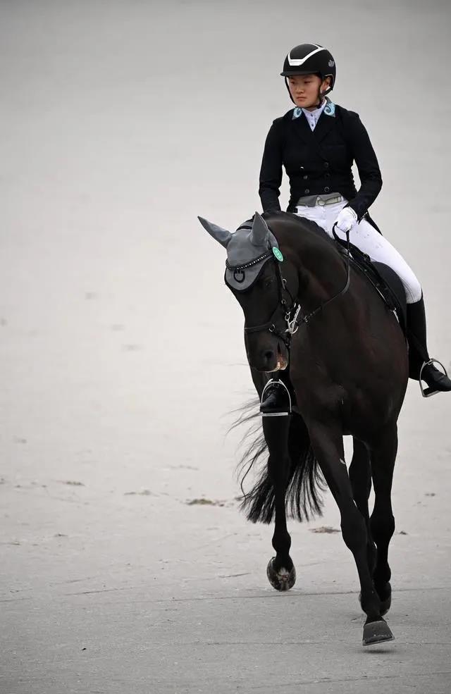 上海队骑手束昱颖在三项赛-盛装舞步赛项目中 ©新华社