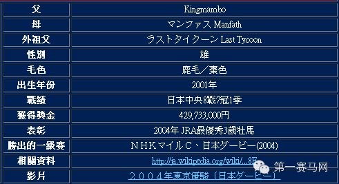 2004年,日本练马师松田国英训练的“夏威夷王”(King Kamehameha, キングカメハメハ)于NHK 一哩赛以5个马位大胜,相隔3周后胜出增程800米的日本德比,并打破东京马场翻新后的地场纪绿时间。并在休养4个月后再胜出神户新闻杯。以操练手法狠辣见称的日本练马师松田国英,把爱将们一个一个送上冠军宝座,然而代价是,其马房门下战驹却因其狠辣手法相继受伤,“夏威夷王”亦逃不过这命运,在部署秋季天皇赏期间操练受伤,经诊断为右前脚筋腱发炎,最少需休养半年。