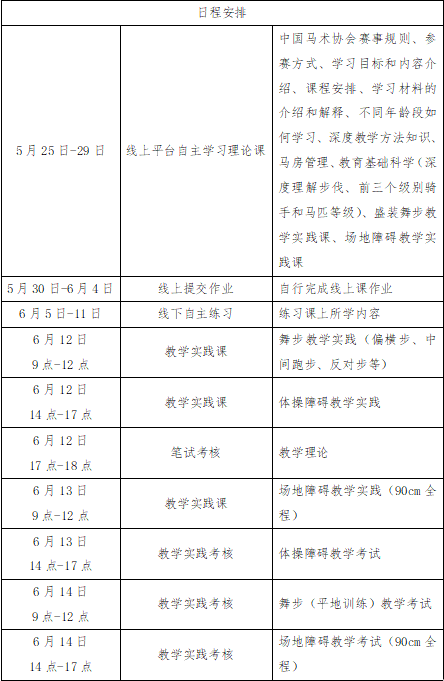 (三)线下辅导和实践考核:2023年6月12日-14日,在无锡阳山梦想马术学府进行线下集中辅导与实践考核。