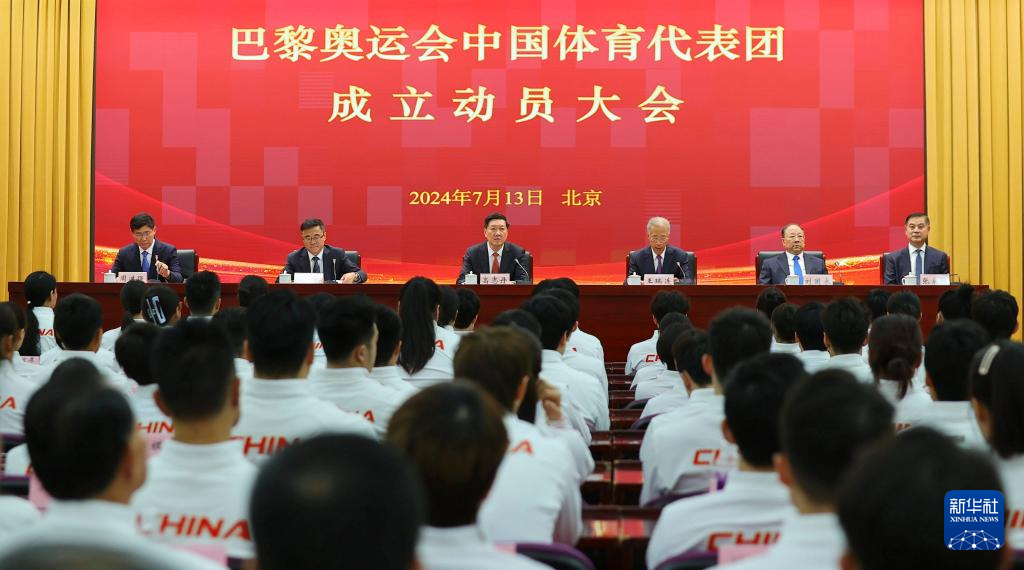 7月13日,巴黎奥运会中国体育代表团成立动员大会在北京举行。国家体育总局局长、党组书记高志丹出席会议并作动员讲话。会议由国家体育总局副局长、党组副书记王瑞连主持。中央纪委国家监委驻体育总局纪检监察组组长、党组成员习骅,国家体育总局副局长、党组成员刘国永、周进强、张家胜出席会议。