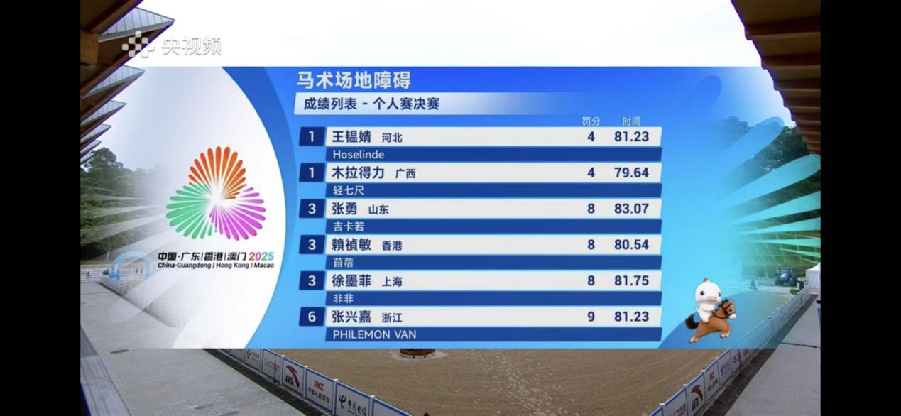 聚焦全运|马术场地障碍个人决赛鸣金 木拉得力获冠军,王韫婧和张勇分摘银铜