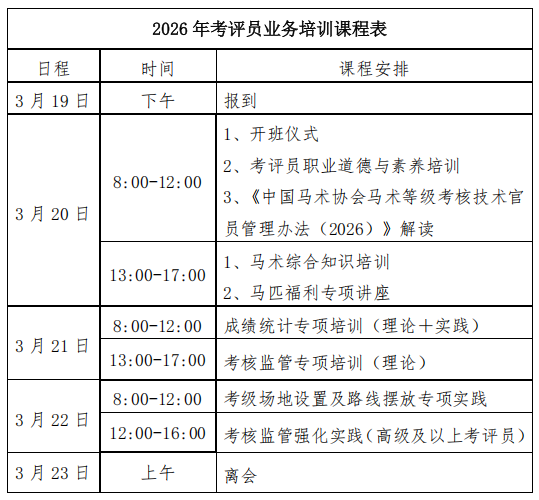 中马协关于举办马术项目考评员业务培训的通知