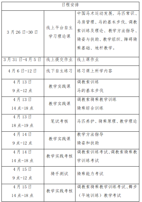 (三)线下辅导和实践:2026年4月13日-15日,在河南地里马术俱乐部进行线下集中辅导与实践。
